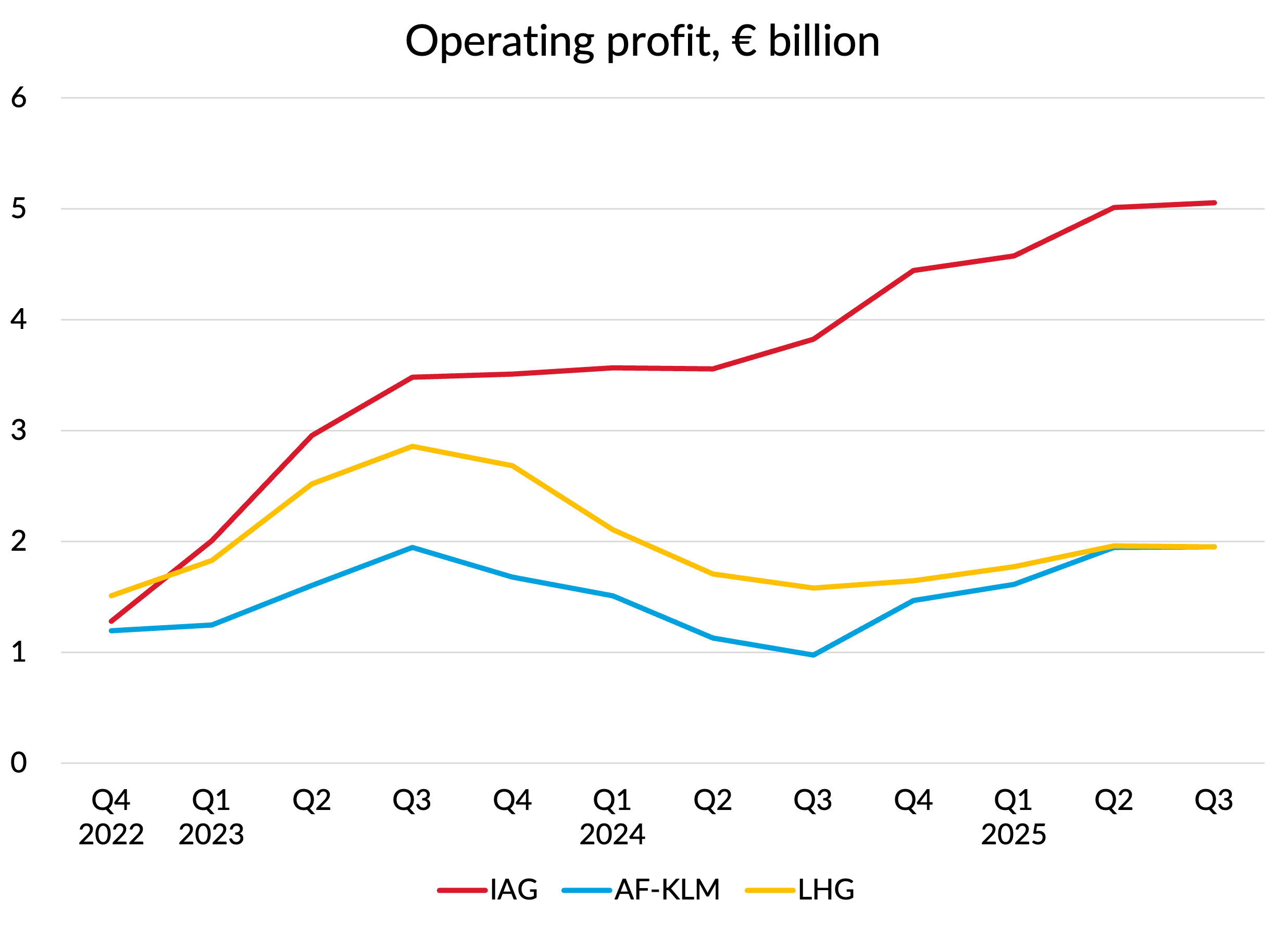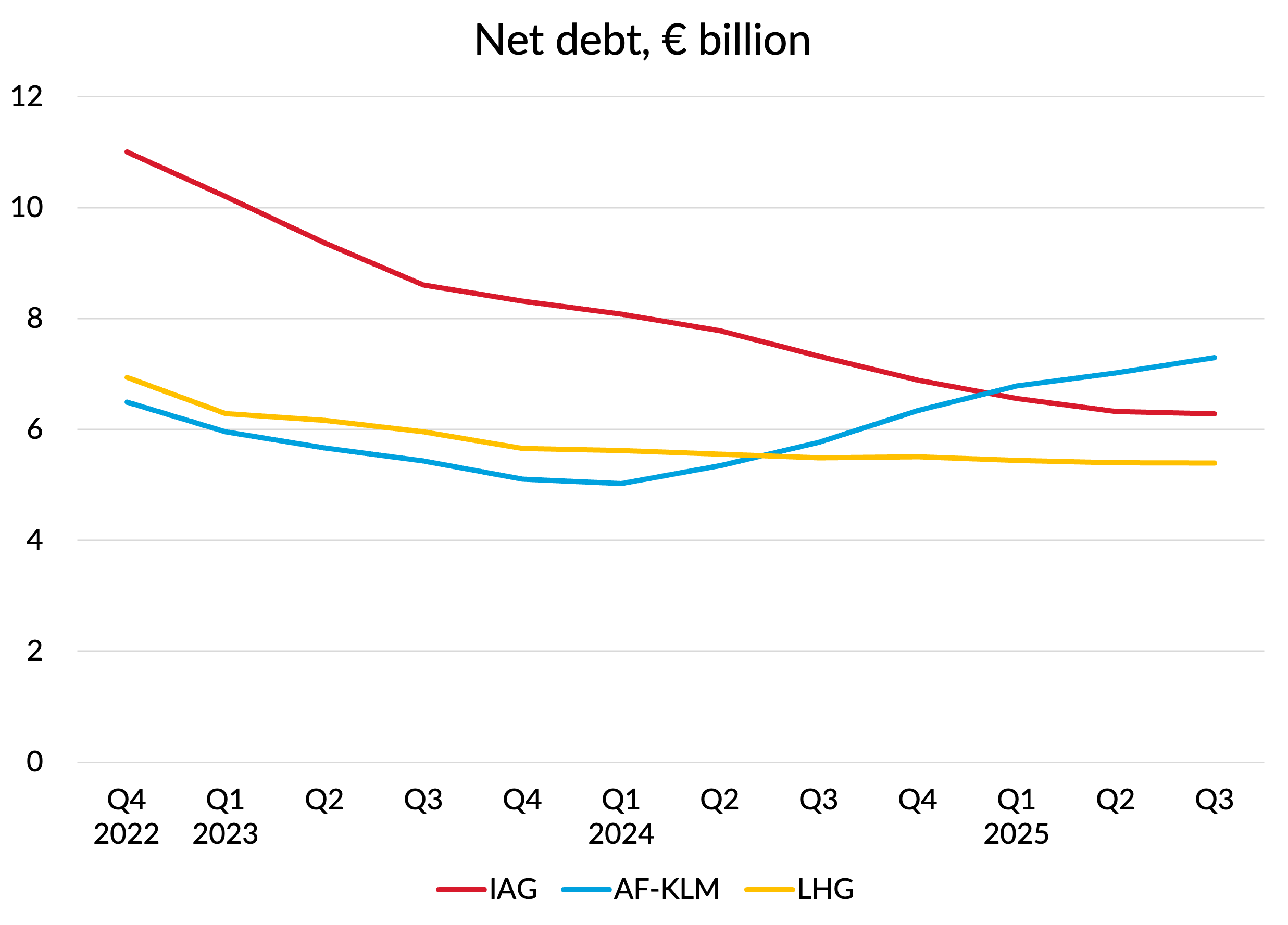 As at Jun 2025 (IAG), Sep 2025 (LHG) and Dec 2024 (AF-KLM).