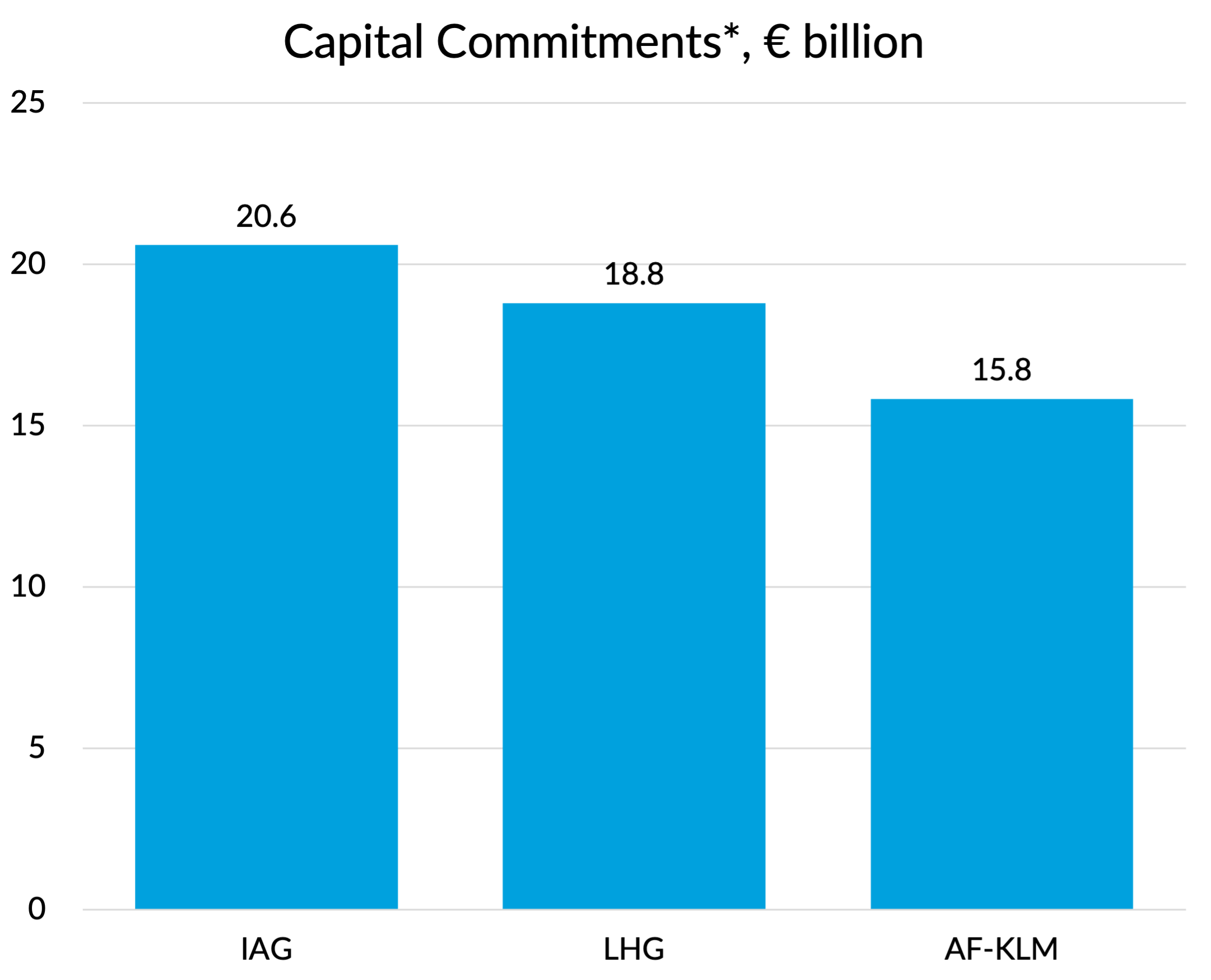 All three groups have significant commitments for future aircraft spend. Despite being arguably in a somewhat better place already, IAG has placed the biggest bet, with €20.6 billion of capital commitments at June 2025. That’s up substantially from the €12.6 billion of commitments at the end of 2024, after IAG placed orders for an additional 71 wide-body aircraft in the first half of 2025.