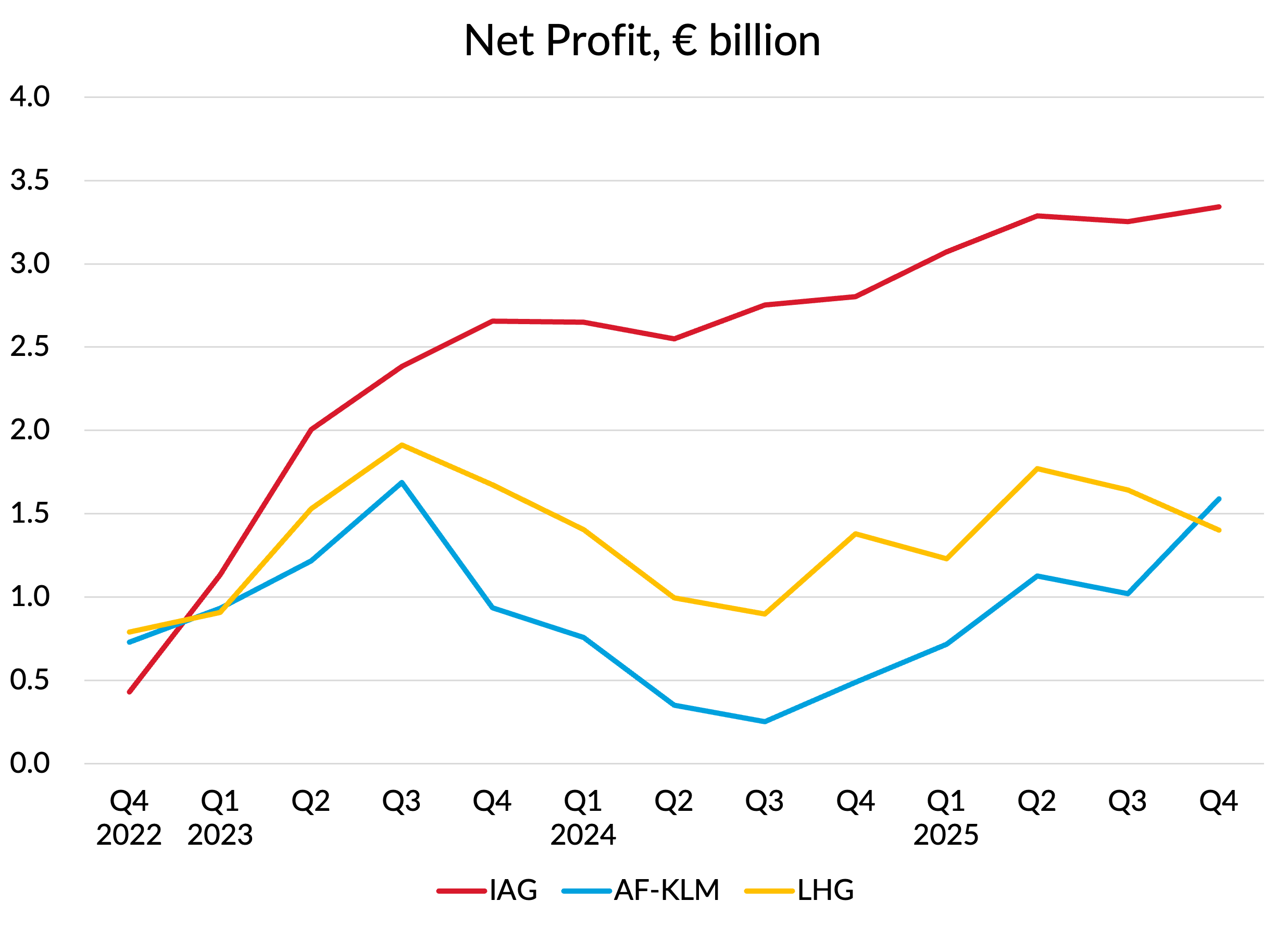 IAG’s superior operating profits and cashflows contributed to a much healthier trend for net profits too, with the group making more profits that the other two combined in 2025.